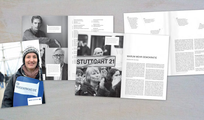 Conception and design of image and ranking brochures Created for Mehr Demokratie e. V. at AGAPI dialog.konzept.design, Hamburg