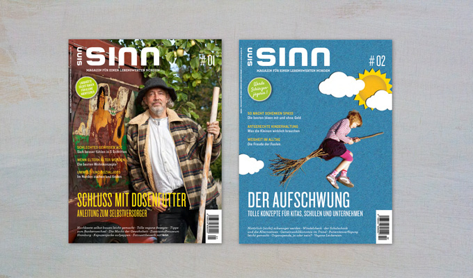 Design of sinn – a magazine focusing on social, green, health, food and spiritual consciousness. Created for sinn, Berlin